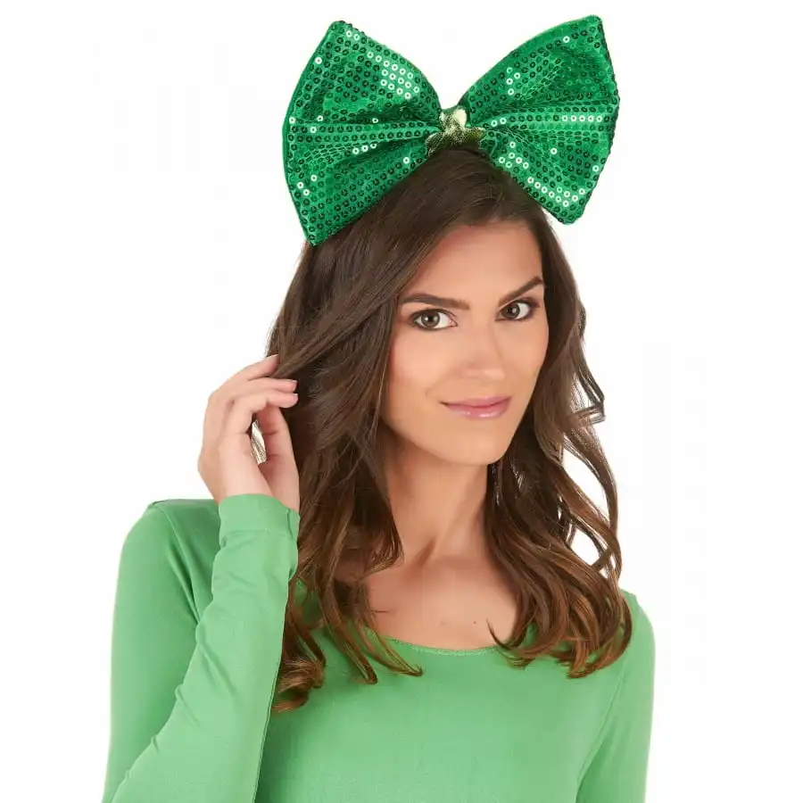 Soignez les détails de votre déguisement pour la St Patrick, avec notre serre-tête noeud St Patrick avec sequins.