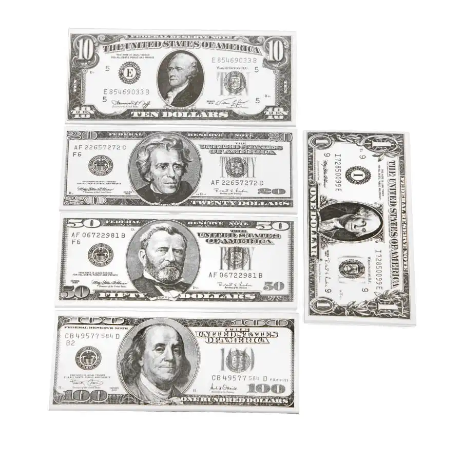 Le lot contient des billets de 1$, 5$, 10$, 50$ et 100$.