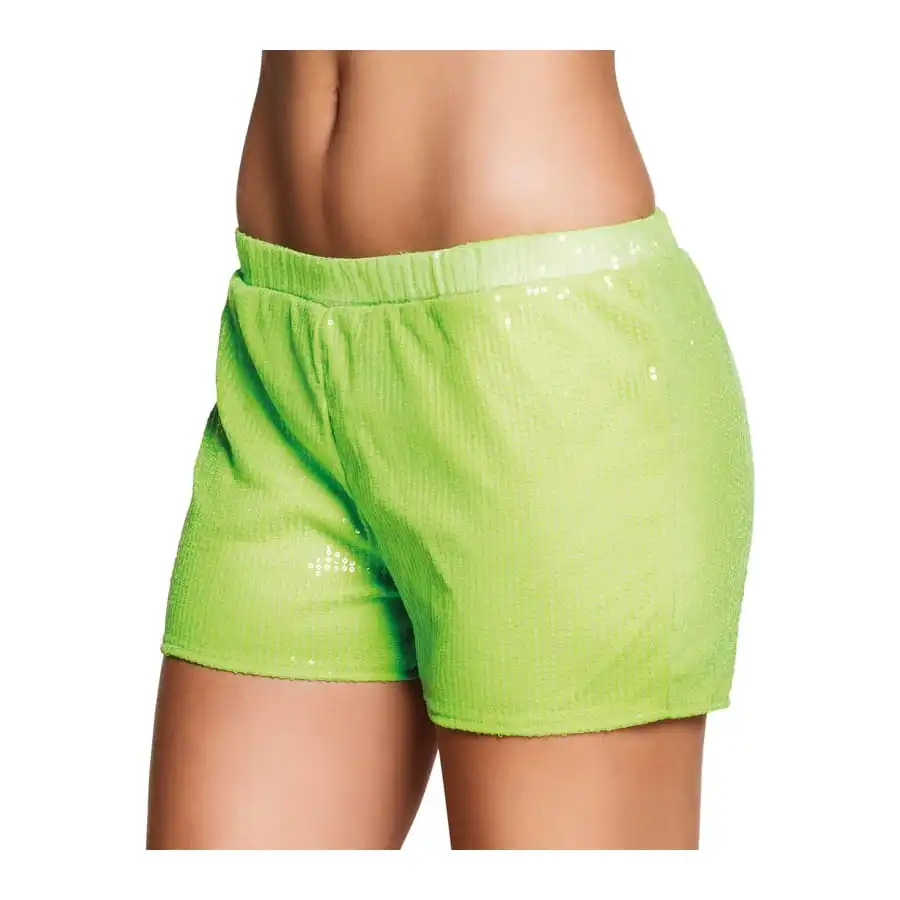 Ce short vert fluo recouvert de sequins est une idée de tenue idéale.