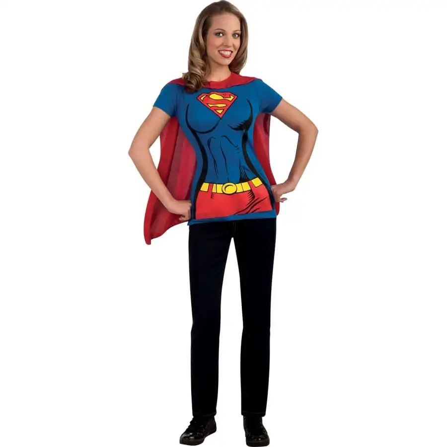 Super vitesse, super force, super souffle, super intelligence, et la liste est encore longue ! Supergirl surpasse de loin les capacités des grands super héros. Revêtez sans plus tarder ce t-shirt de supergirl avec cape sous licence officielle Supergirl. De couleur rouge et bleue, le vêtement est agrémenté de l’imprimé du buste de l’héroïne sur le devant. Il est accompagné d’une cape rouge à fixer à l’arrière par des scratchs.