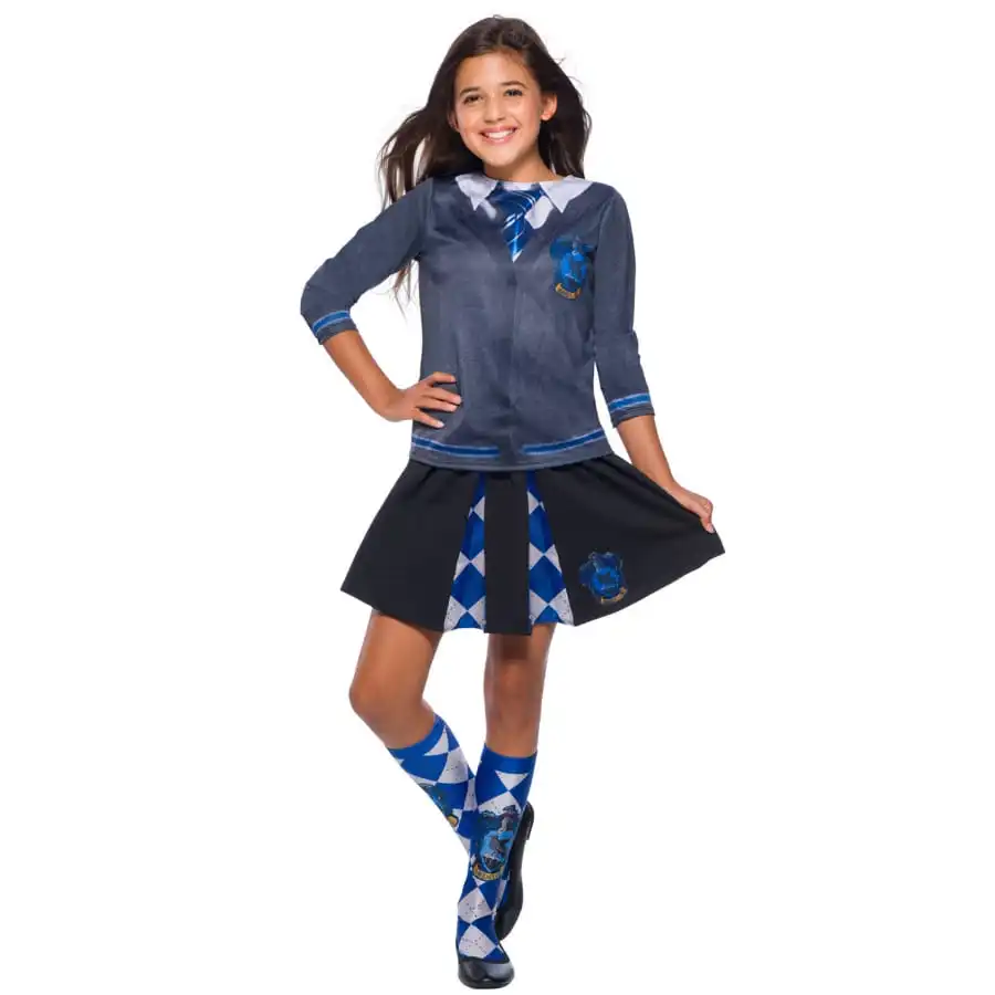 Ce t-shirt simple mais élégant, reprend les tons bleus et les motifs qui rappellent la tenue des élèves de la maison Serdaigle dans la saga Harry Potter. De jolis liserés marquent les extrémités des manches et la taille. Le t-shirt intègre un faux col et chemise blanc et une fausse cravate très réaliste. Le logo de la maison Serdaigle est présent sur la poitrine côté coeur.