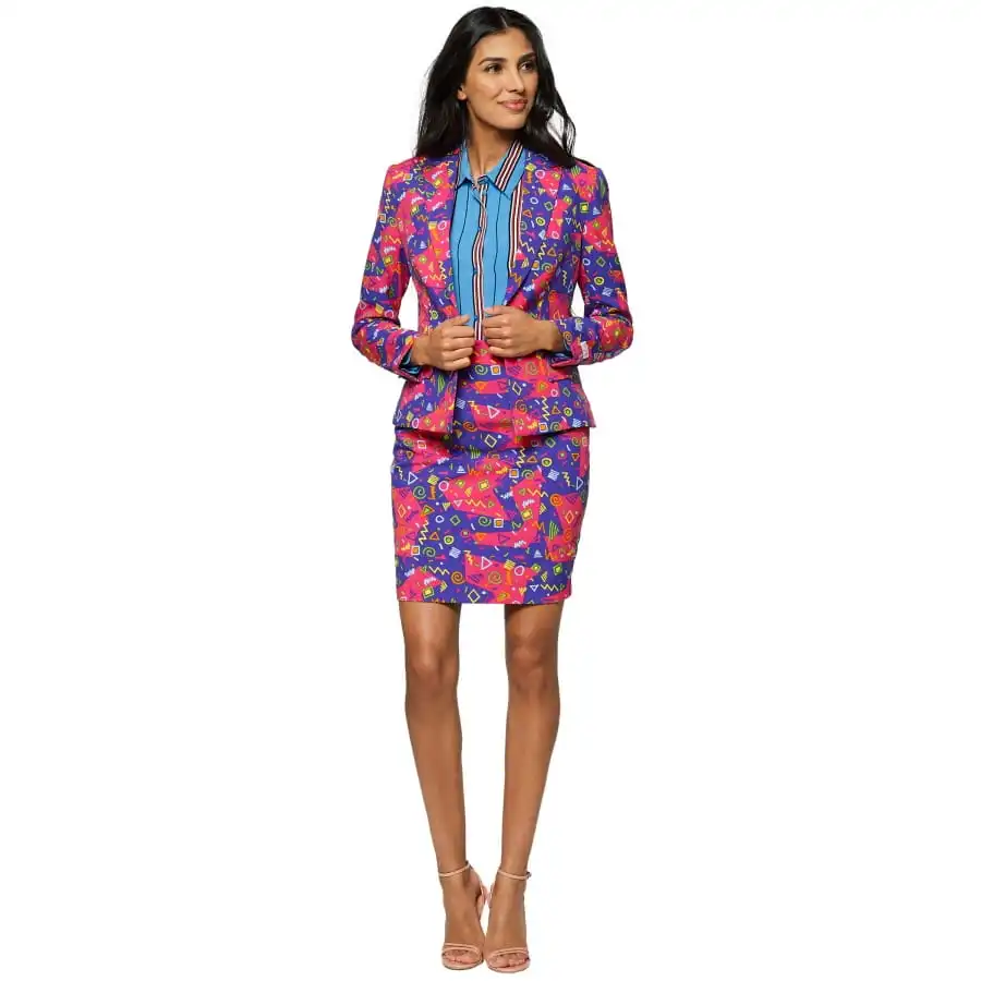 Le tailleur motifs festifs années 80 est un costume pour femme conçu par la marque Opposuits.