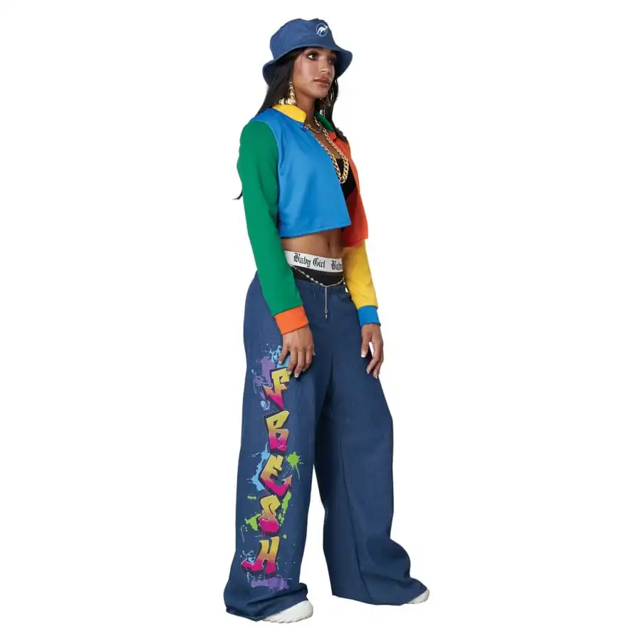 L’univers rétro fait son grand retour et vous invite à la fête, avec la tenue de style hip hop des années 90 pour femme.