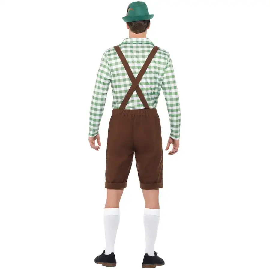 La Saint-Patrick vous met au vert ! Mais que diriez-vous d’associer cet Ă©vĂ©nement Ă la culture bavaroise ? Messieurs, faites-vous un look stylĂ© dans cette tenue short marron de Tyrolien. A la fois classe et vintage, l’ensemble se porte aussi bien Ă la Saint-Patrick qu’Ă la fĂŞte de la bière. Il est composĂ© d’une chemise Ă carreaux verte, Ă manches longues, avec une petite ficelle marron placĂ©e au niveau du col, Ă attacher par devant. L’article comporte Ă©galement une salopette de couleur marron foncĂ©. Il s’agit d’un short marron uni accompagnĂ© de bretelles Ă motifs marron et rouge. Inspirez-vous de la photo pour fignoler le dĂ©guisement. Des chapeaux de bavarois et divers accessoires vous attendent encore sur happyfete !
