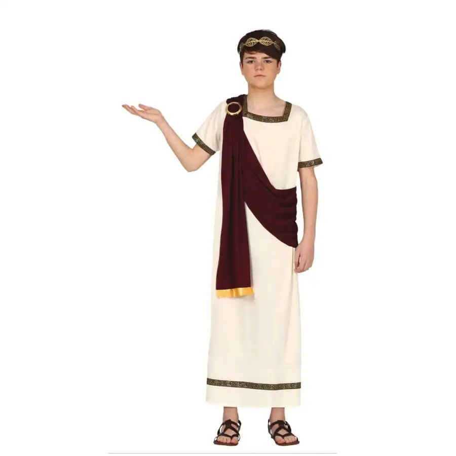 Remontez le temps l’instant d’une soirée sur le thème historique, en portant la toge blanche d’enfant romain avec drapé rouge.