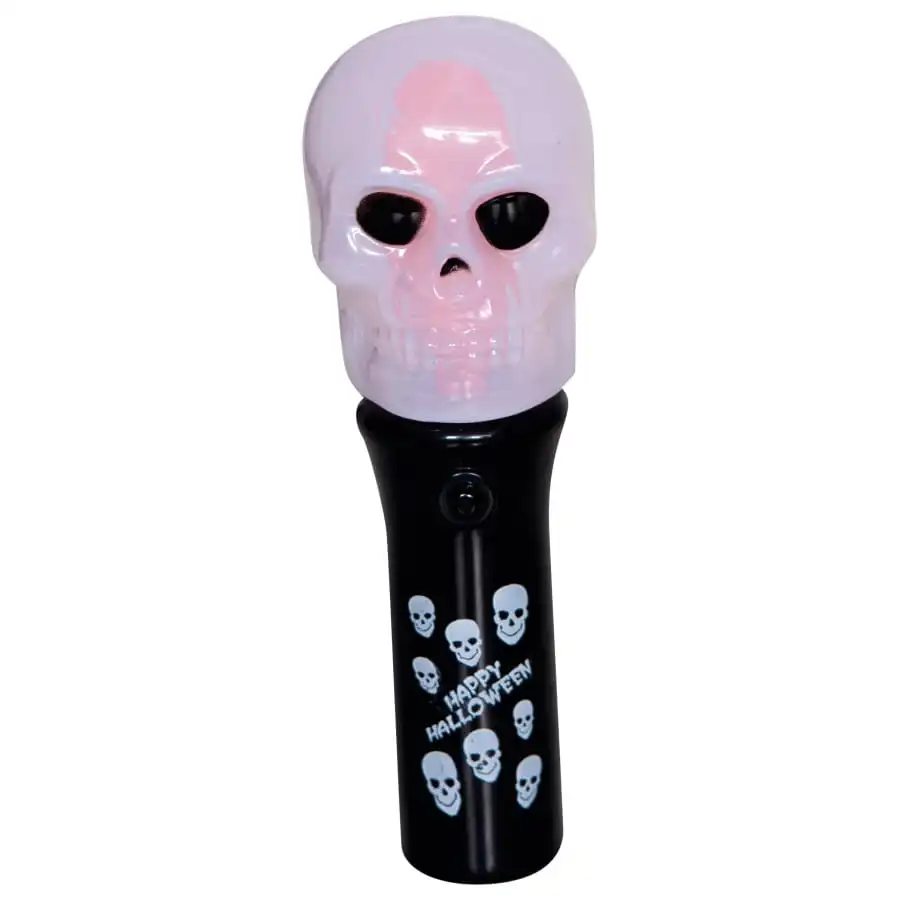 Il est question d’une torche formée d’une tête de mort blanche montée sur un support de couleur noire.