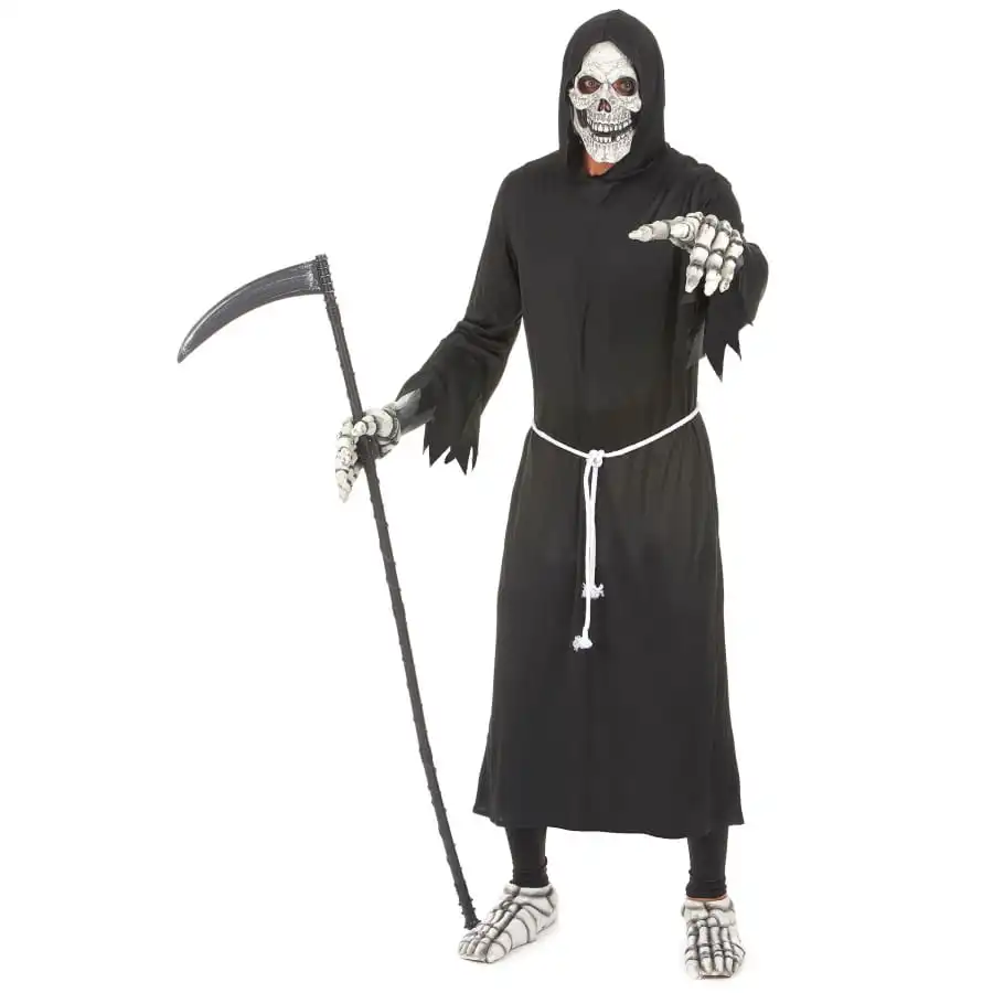 Incarnez la mort le soir d’halloweeen grâce à cette Tunique de faucheur pour adulte qui mesure environ 135 cm de long sans capuche.
