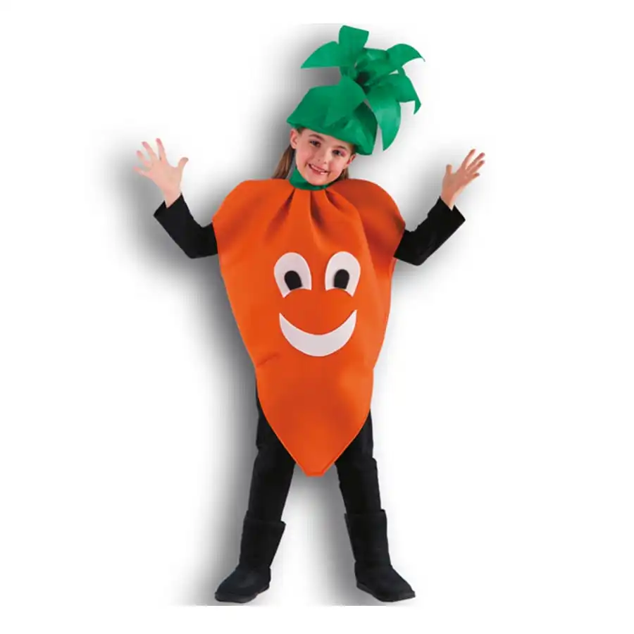 Nous vous présentons notre ensemble tunique et chapeau déguisement carotte fille.